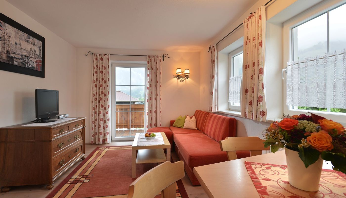 - 1 Schlafzimmer mit Doppelbett aus Zirbenholz und ein zusätzliches Schlafsofa stehen Ihnen zur Verfügung.