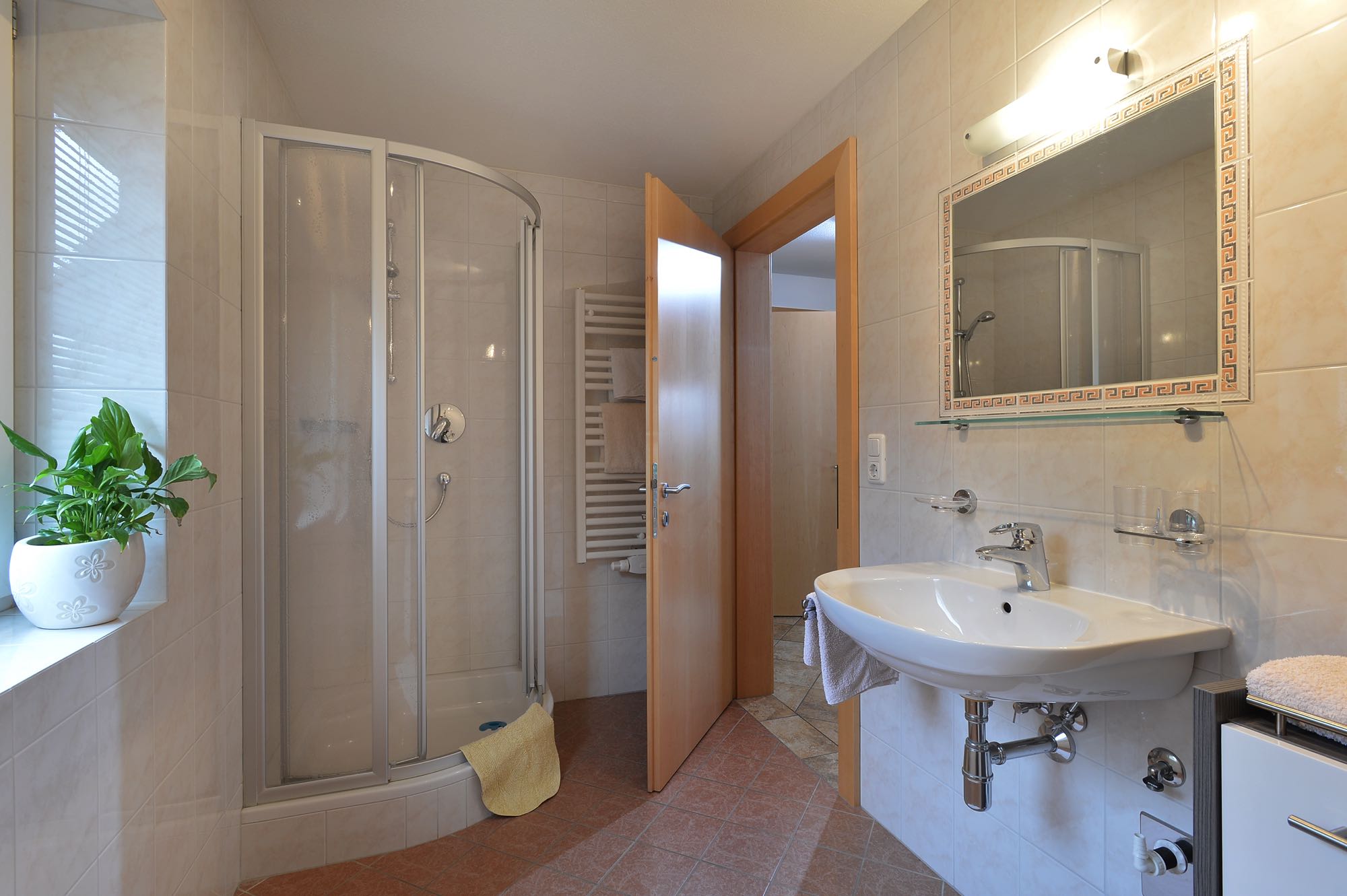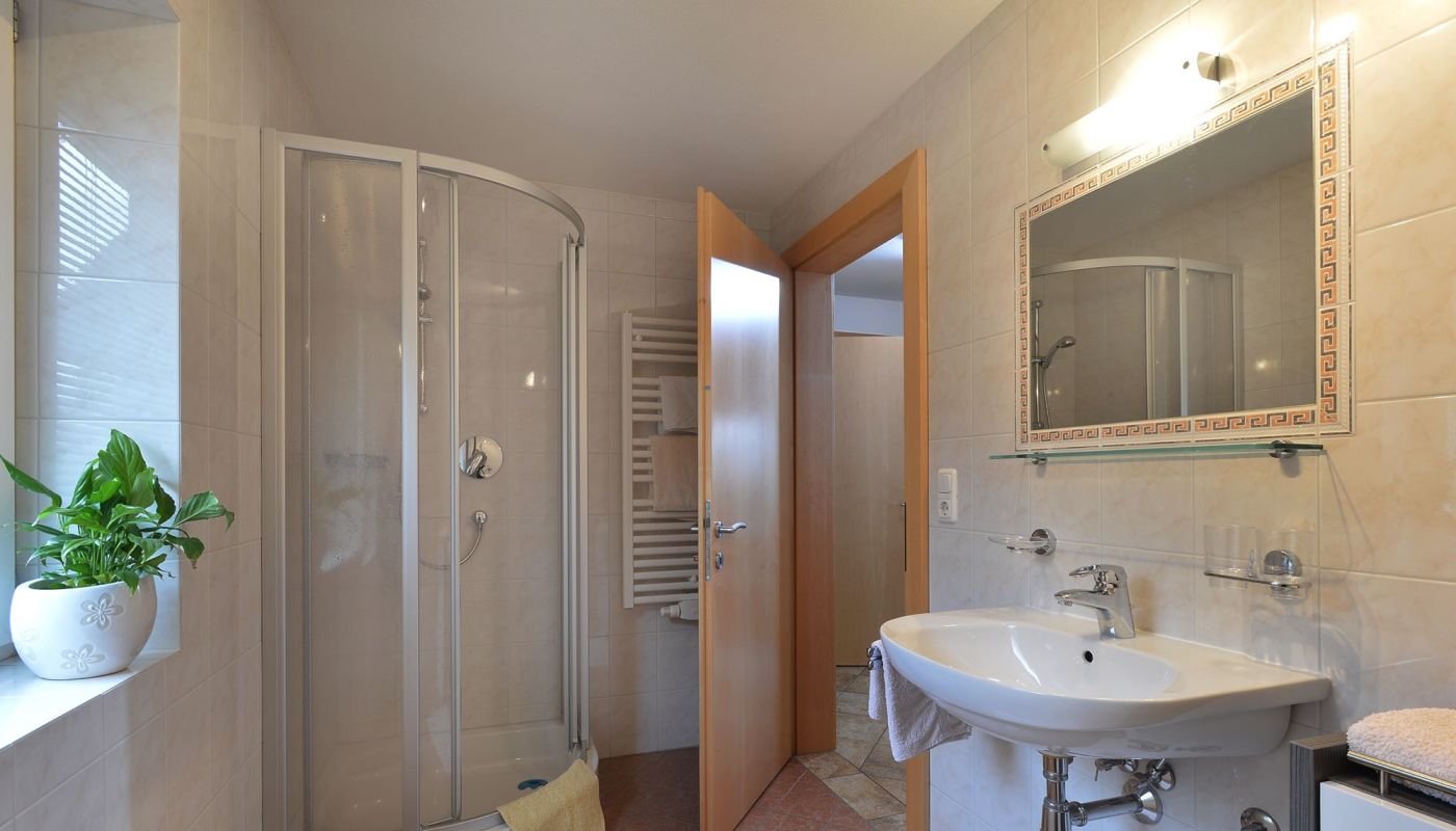 - 1 geräumiges Bad mit Dusche, WC, Haarföhn, Handtücher sind vorhanden.