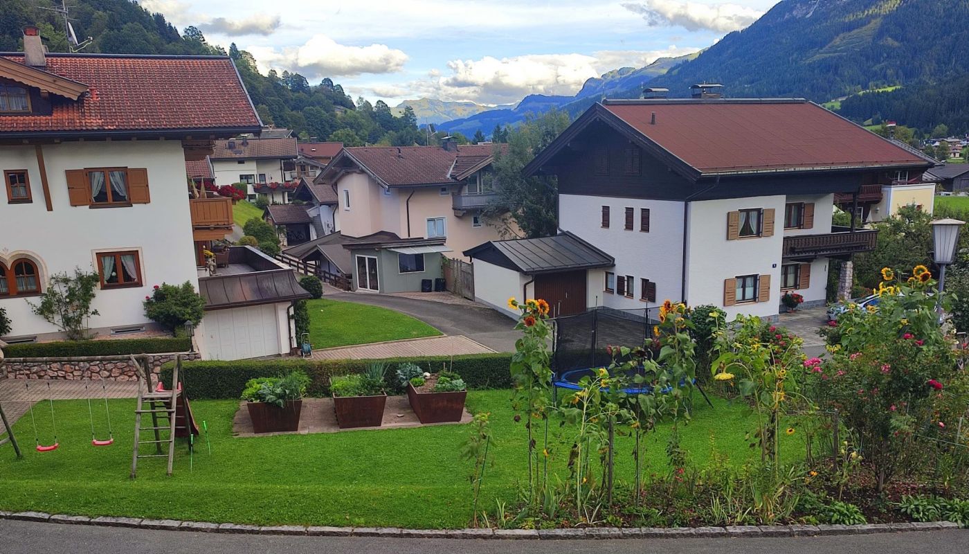 Garten mit Liegewiese, Spielplatz und Grill, PKW-Parkplatz, Skiabstellraum, Radkeller