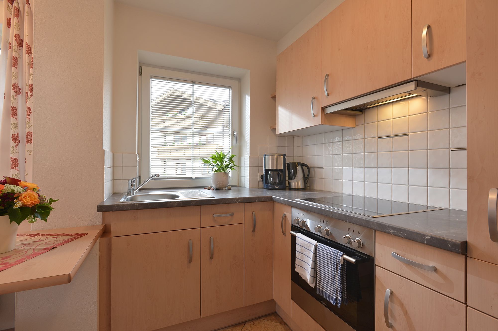 - Wohn-Küche mit Sitzgruppe, voll ausgestattete Küche mit E-Herd, Backofen, Dunstabzug, Kühlschrank mit Gefriermöglichkeit, Kaffee-Maschine, Geschirr und Gläser, Küchen-Utensilien, Tisch-und Küchenwäsche, ...